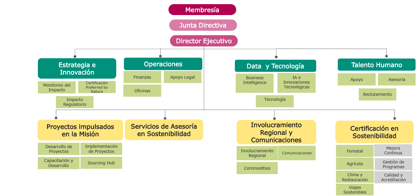 Nuestra Junta Directiva guía y supervisa nuestras operaciones y participa en la planificación estratégica y la toma de decisiones. Está formado por expertos en administración de empresas, desarrollo organizativo, asuntos financieros y jurídicos, así como en conservación, certificación y participación comunitaria.