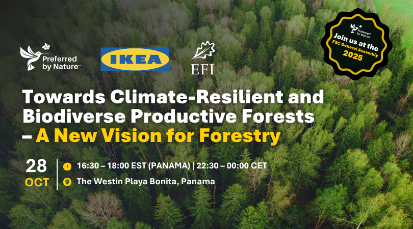 Join us at our 10th FSC General Assembly side event to explore a new science-based framework for climate and biodiversity smart forest management. The initiative is developed in collaboration between Preferred by Nature, IKEA, and the European Forest Institute (EFI).