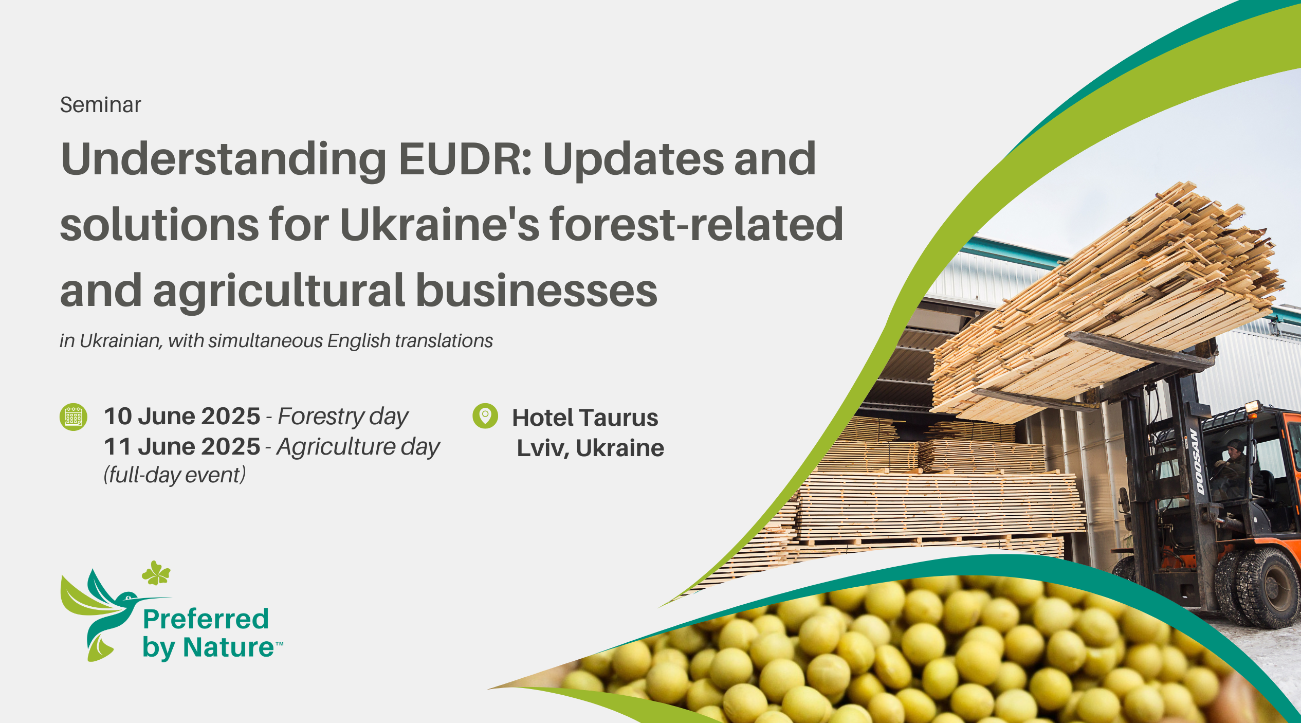 Registration for Forestry Day (Day 1) is now closed. However, places are still available for Agriculture Day (Day 2). To register for Agriculture Day, please email Oksana Hrytsyshyn at ovorona@preferredbynature.org. Secure your spot now and be part of the conversation!