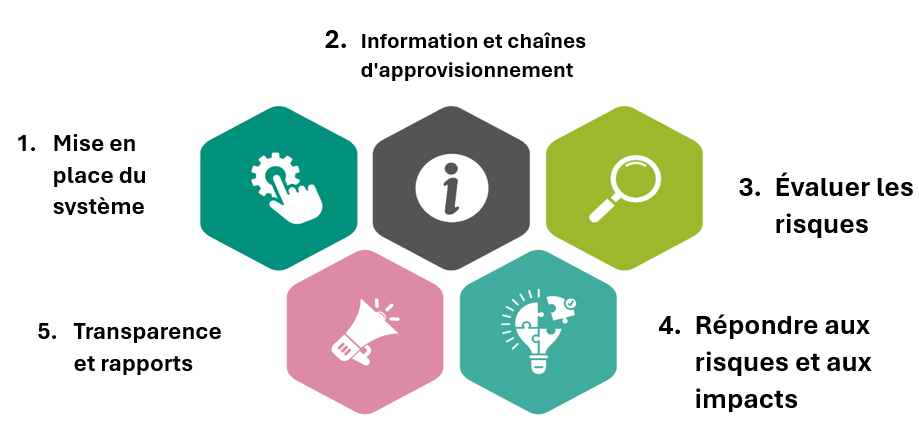 La boîte à outils sur la diligence raisonnable, composée de documents d'orientation, de modèles et d'exemples de procédures, fournit aux organisations les ressources nécessaires pour évaluer, gérer et atténuer les risques en matière de développement durable tout au long de la chaîne d'approvisionnement. Elle met l'accent sur la transparence, la conformité et l'amélioration continue des efforts en matière de développement durable.